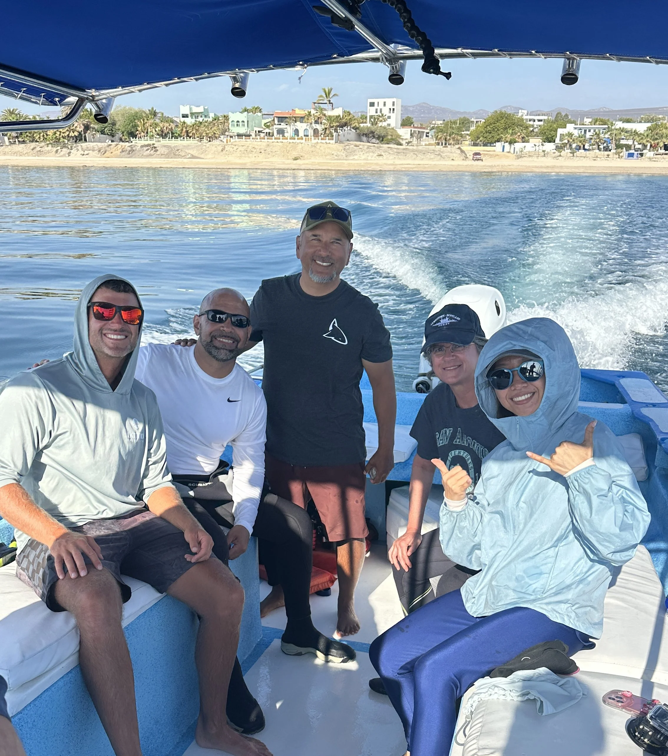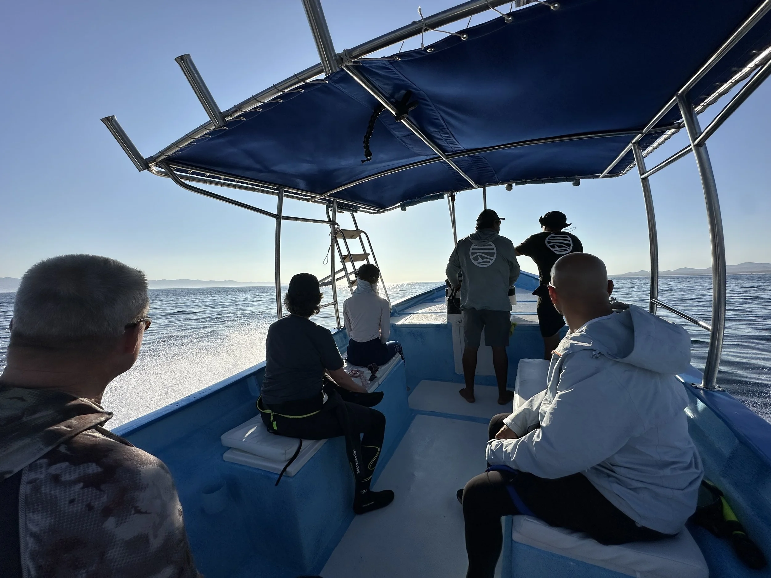 So we shifted gears and made our way to La Reyna to swim with the sea lions. But when we got close, we noticed a few boats off in the distance. Something was up.