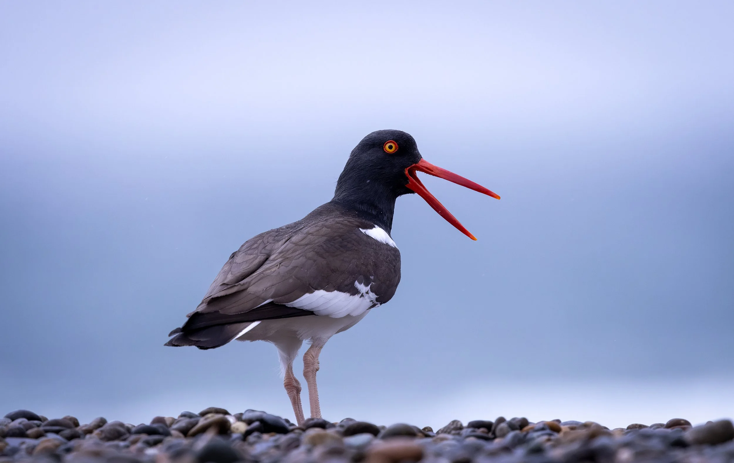 We photographed this oystercatcher while stealthily approaching a group of elephant seals sleeping on the Patagonia beach.